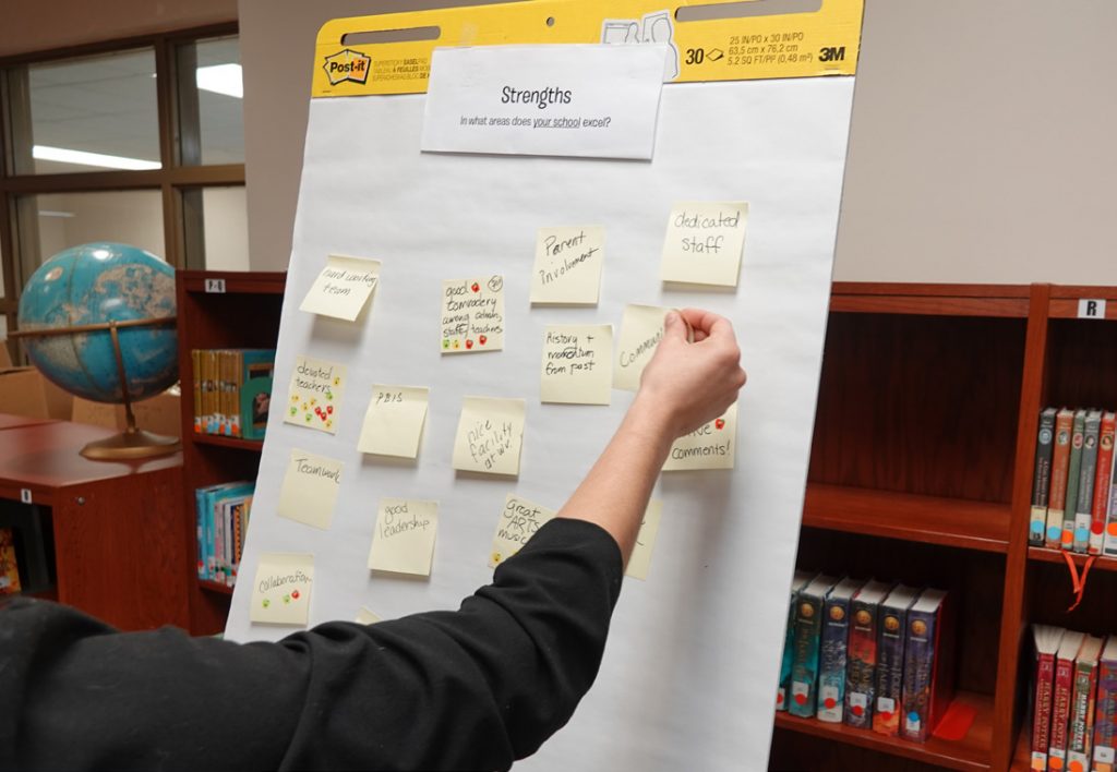 The 90-minute interactive sessions included two parts. First, participants listed strengths, weaknesses, opportunities, and threats specific to their schools, also known as a SWOT analysis. Second, participants divided into groups and played Aha! The Game, developed by the graduate students. Ninety-eight educators from 10 Muncie schools participated in the sessions.