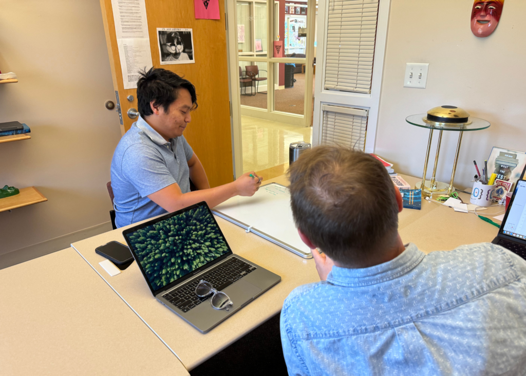 Ian: What’s really nice about my EMDD cohort is you get really tight knit close relationships with lots of different students and faculty members and staff, and so, you know, the biggest influence for me, obviously, is my relationship with my mentor Josh Fisher. But also, Jenn Palilonis and Kevin Moloney helped me become a better writer and storyteller. And Tong Li gave me insight into the way that he thinks about academia and research. All those diverse opinions have all been really informative and I don’t think you get a lot of those personal relationships with people in different departments. And I think a huge mark of success for anyone in university is relationships with others.